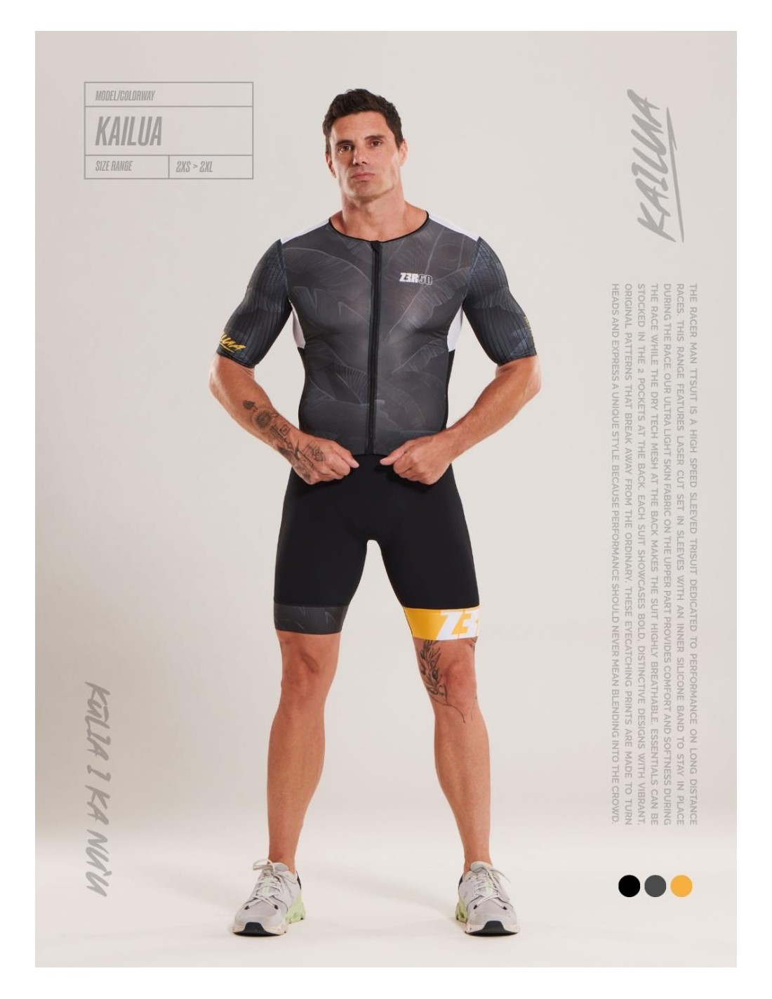 La trifonction TTSUIT RACER ZEROD pour hommes est conçue pour les triathlètes de longue distance, offrant une coupe ajustée de type gilet avec un zip frontal intégral pour faciliter l'habillage et le déshabillage.