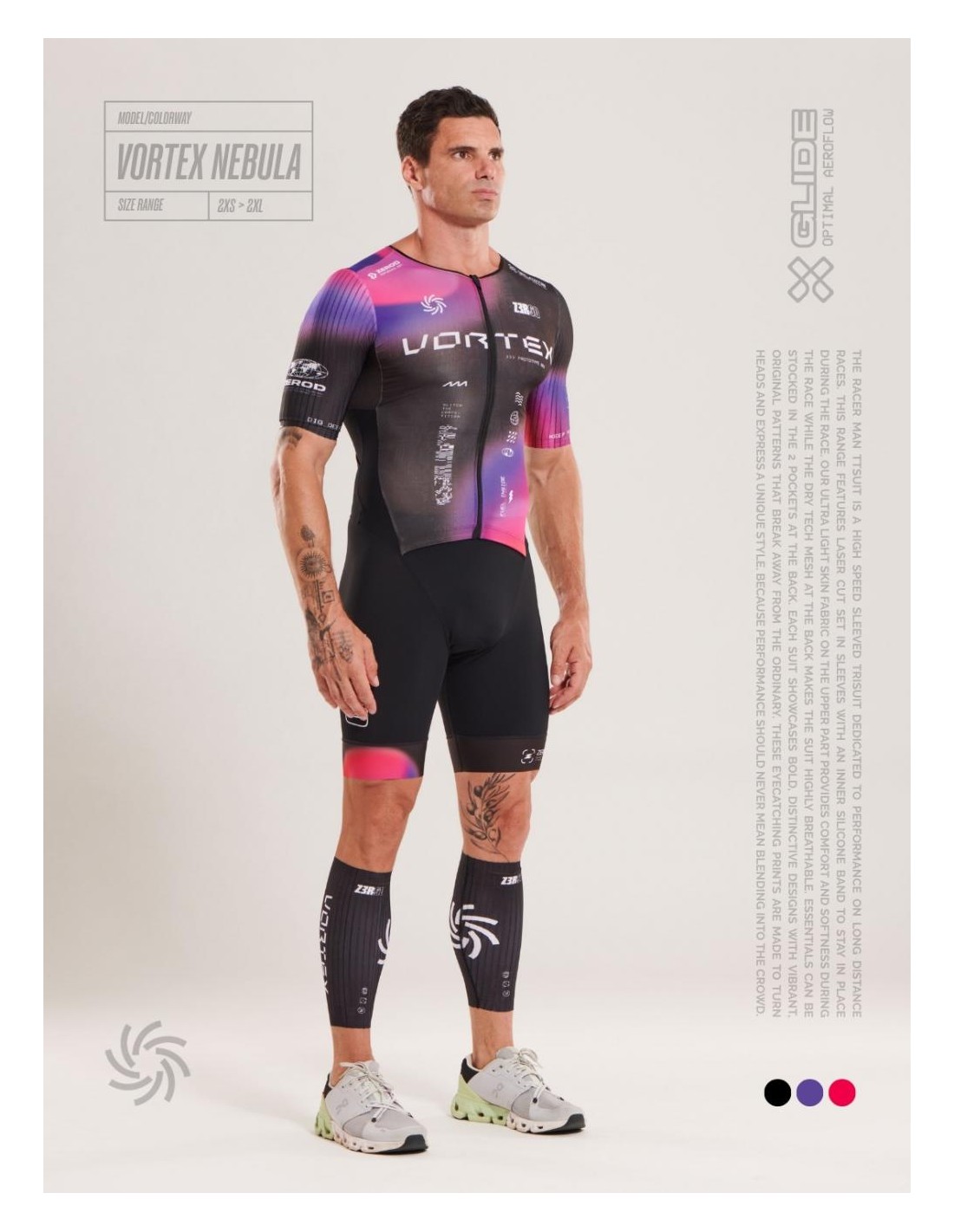La trifonction TTSUIT RACER ZEROD pour hommes est conçue pour les triathlètes de longue distance, offrant une coupe ajustée de type gilet avec un zip frontal intégral pour faciliter l'habillage et le déshabillage.