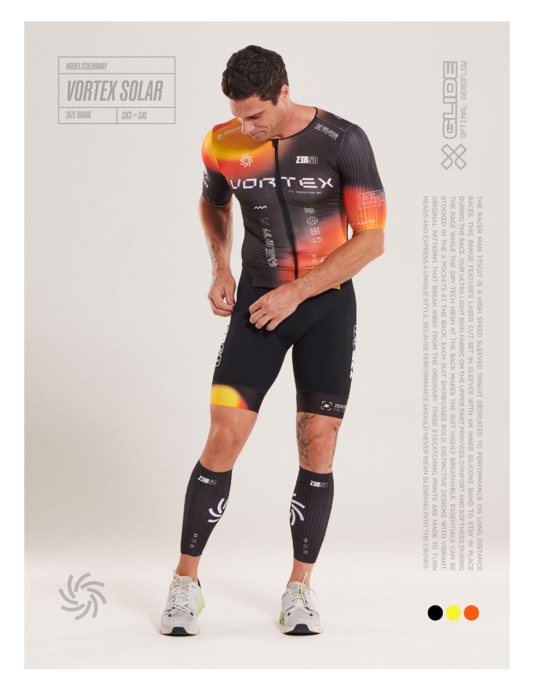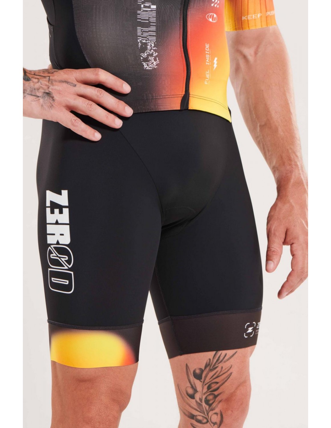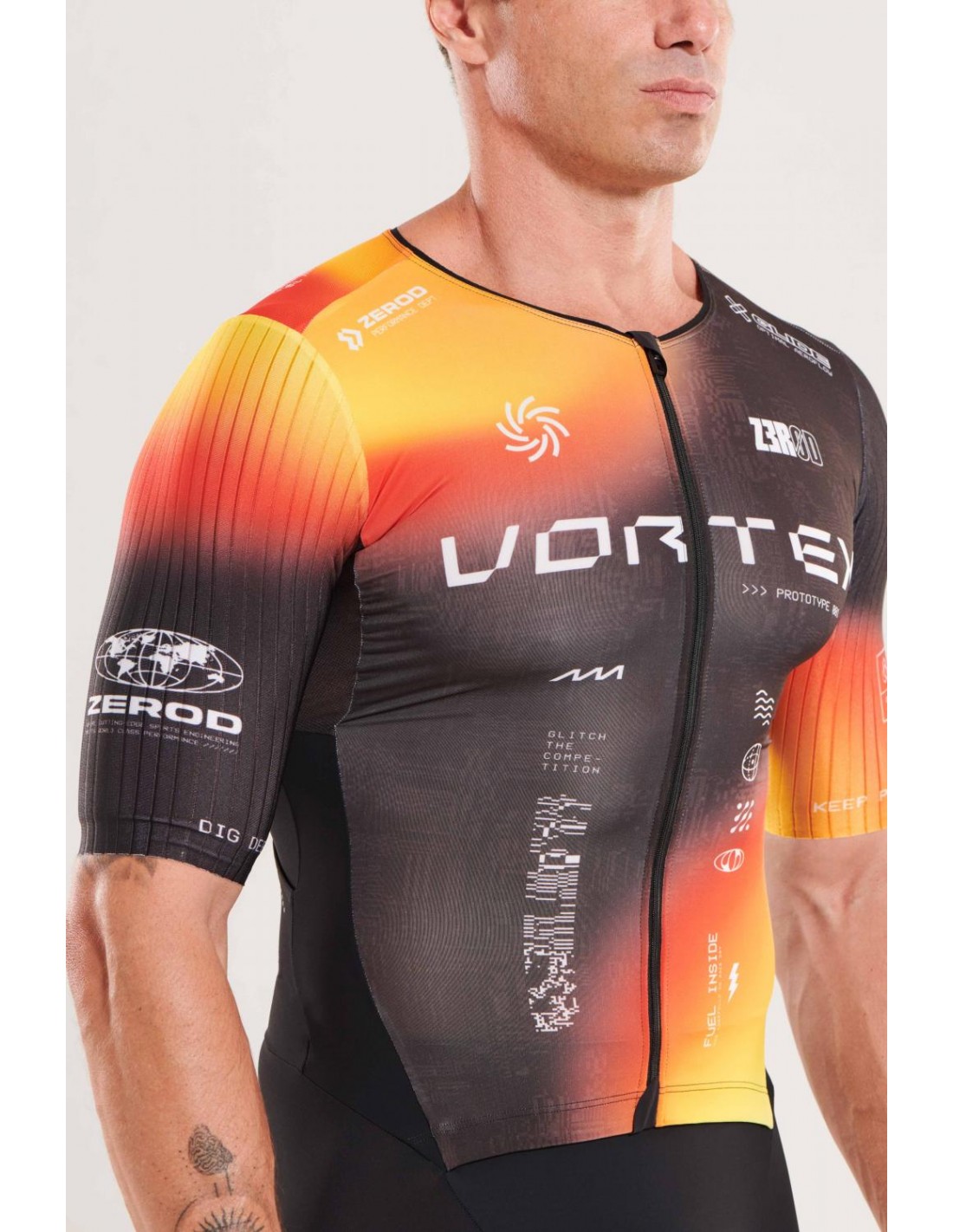 La trifonction TTSUIT RACER ZEROD pour hommes est conçue pour les triathlètes de longue distance, offrant une coupe ajustée de type gilet avec un zip frontal intégral pour faciliter l'habillage et le déshabillage.